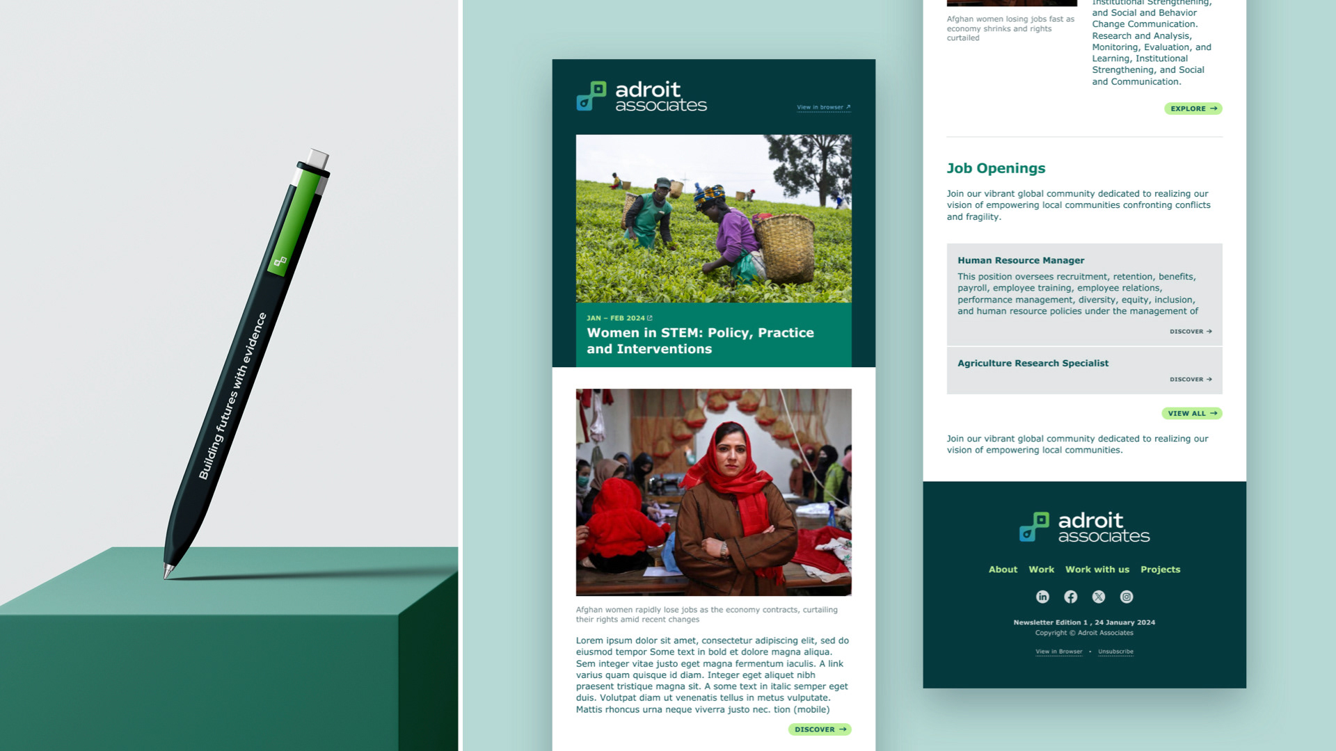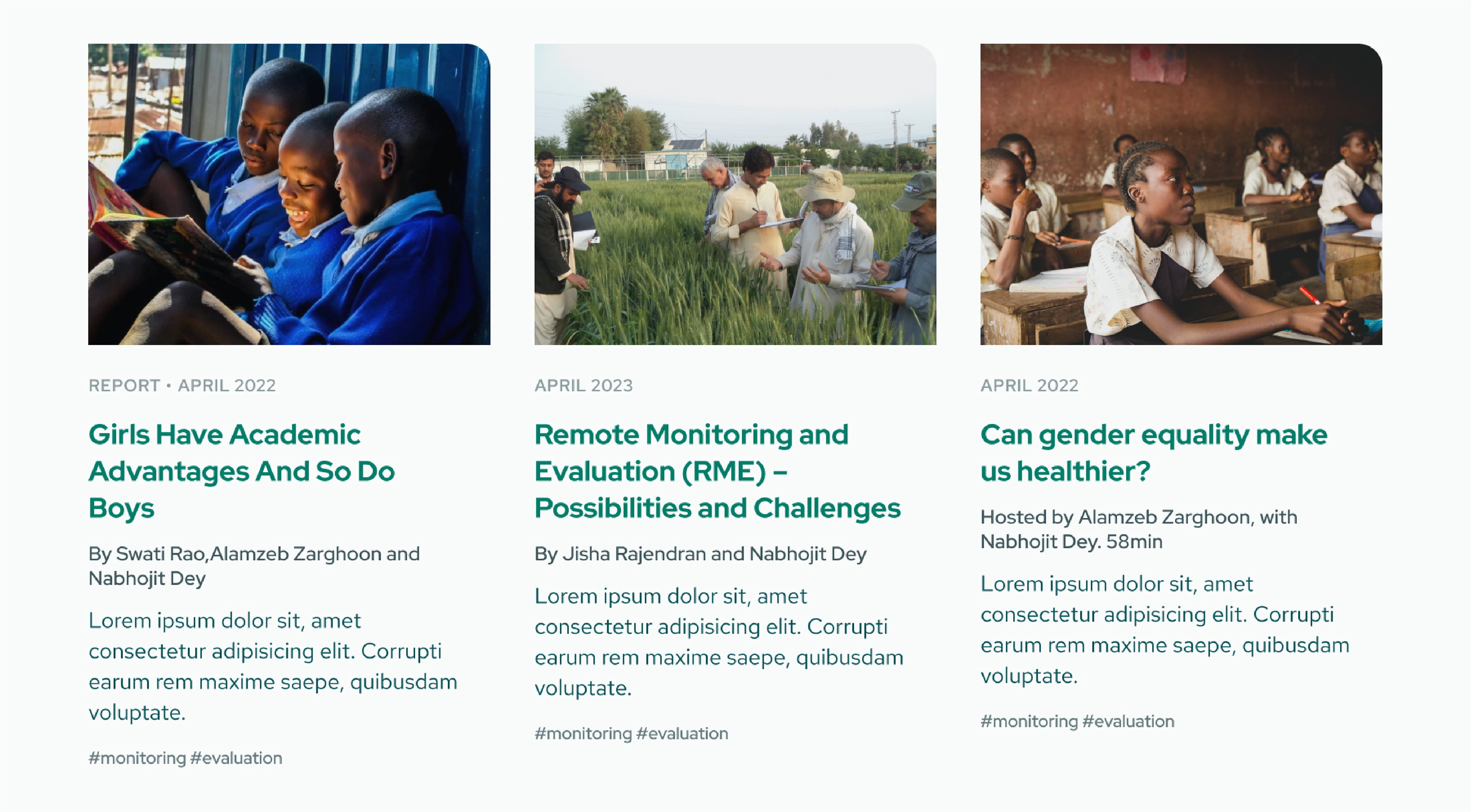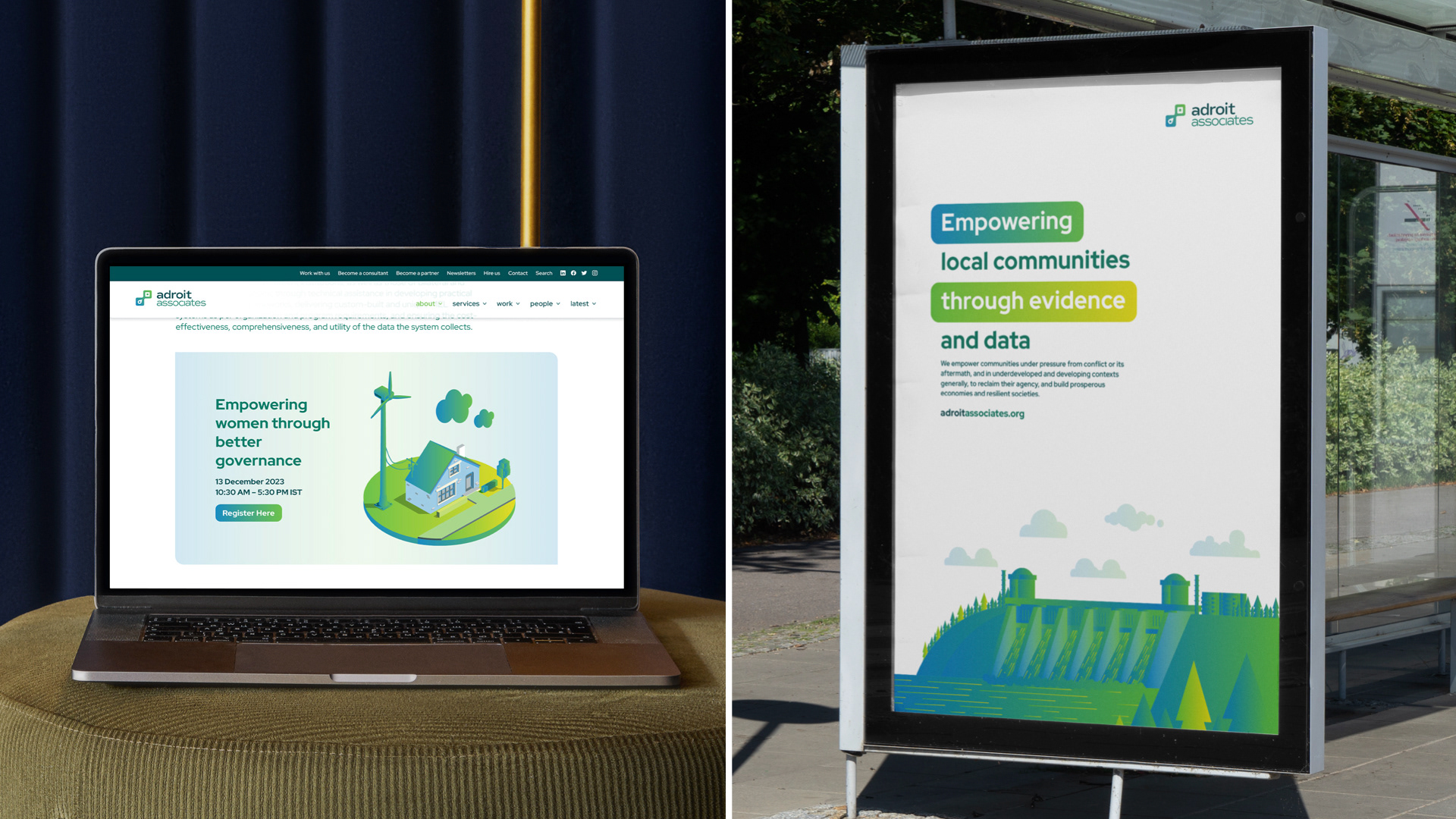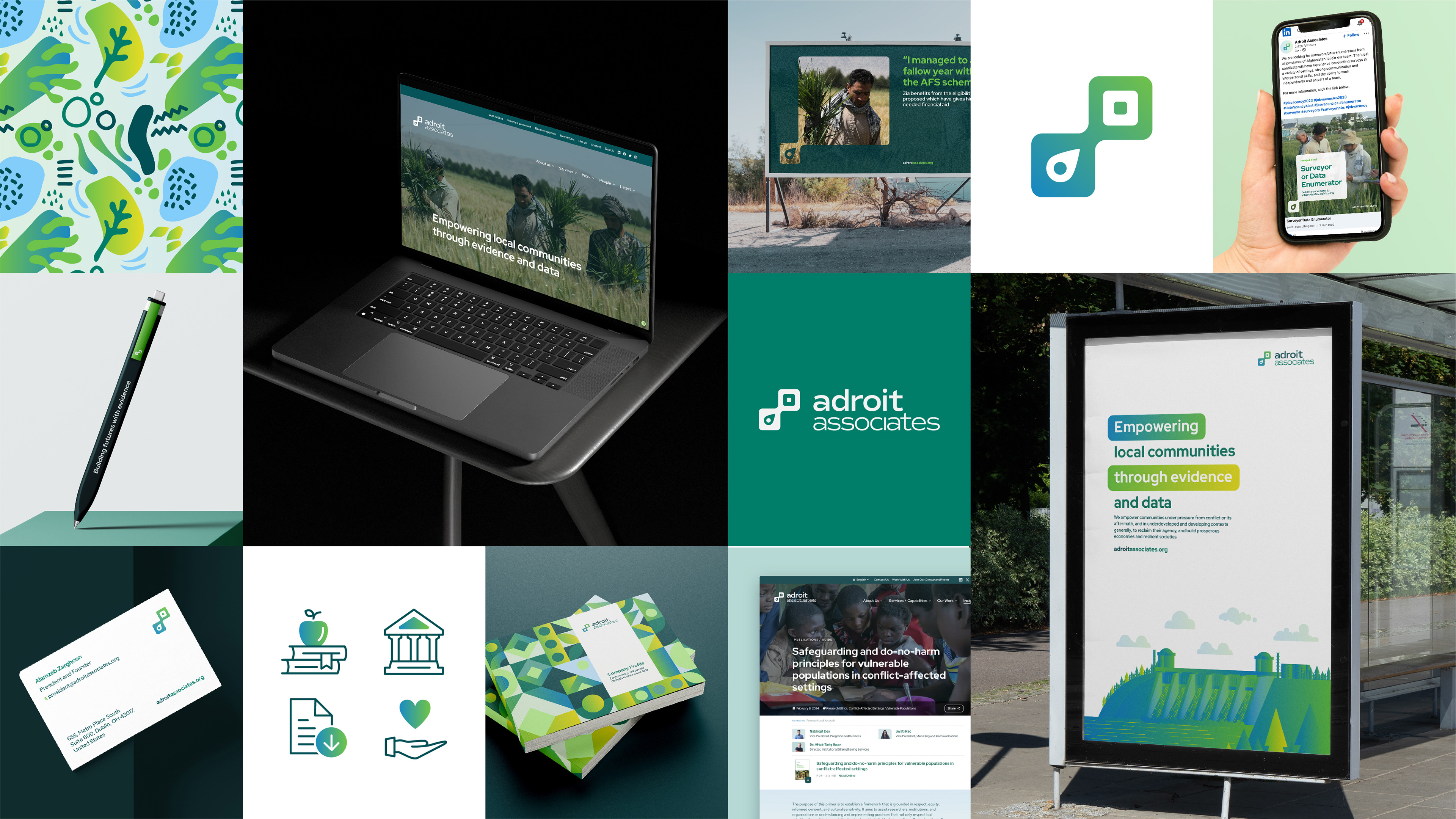 Cards created for the website uses photographs from Adroit Associates existing bank of photographs that offers a window into all the ground-level research undertaken by Adroit Associates and closely showcases the communities that they work with.