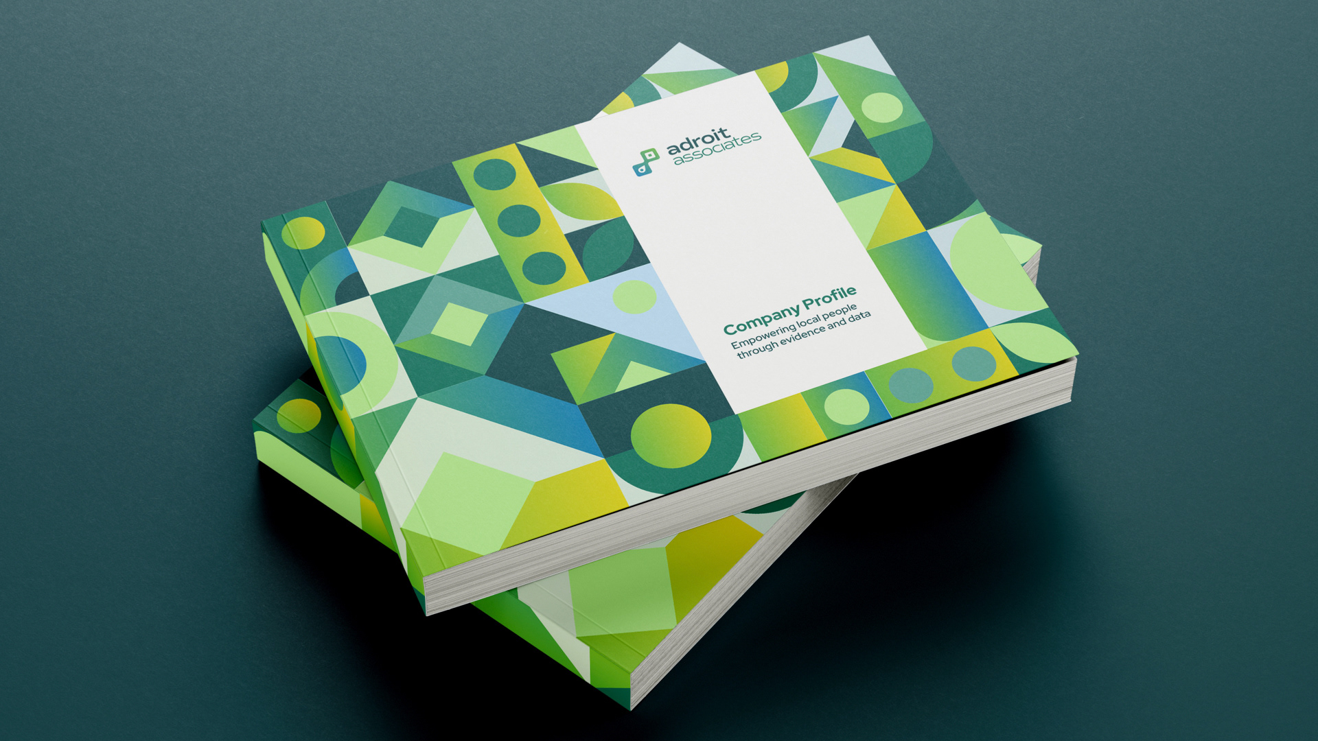 Overall pattern of the company profile's book cover create a distinct and ownable look